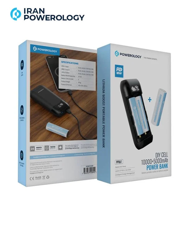 پاوربانک 15000 میلی آمپر پاورولوژی Powerology Diy Cell 10000+5000mAh Power Bank