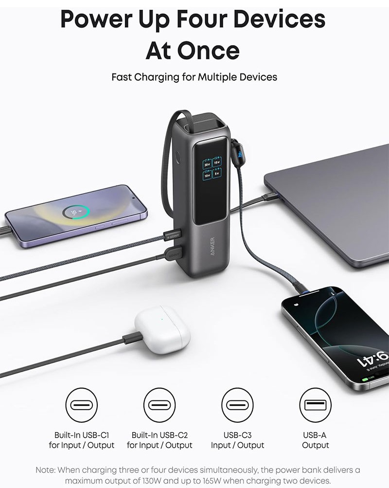 Anker Zolo Power Bank 25K 165W (مدل A1695) محصولی بسیار حرفهای برای کاربران سنگینکار به شرح زیر:
